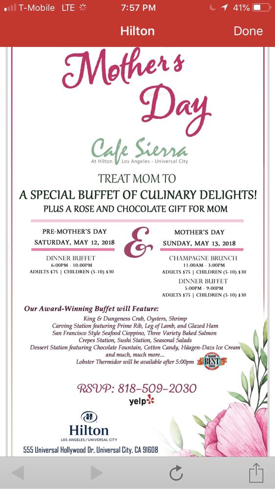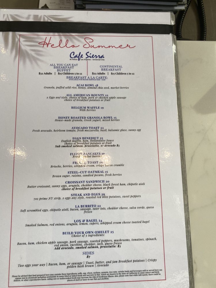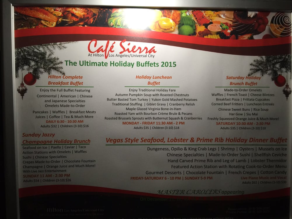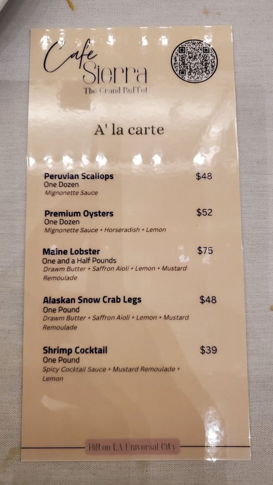 Introducing Cafe Sierra, a New American buffet restaurant located in Universal City, CA. This restaurant offers a wide range of amenities such as wheelchair accessibility, vegan options, and even provides reusable tableware. The menu includes a variety of dishes, from seafood to live jazz ambiance. Customers rave about the incredible service and delicious food. Chef Pavel leads the kitchen team, ensuring quality and variety in every meal. With a spacious dining area, outdoor seating, and a full bar, Cafe Sierra is perfect for family gatherings or special occasions. Whether you're looking for a relaxing brunch or a fancy dinner, Cafe Sierra has something for everyone. Don't miss out on the opportunity to experience the Vegas-style buffet craze right here in your neighborhood. Visit Cafe Sierra for a memorable dining experience unlike any other.